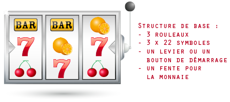Une machine à sous classique contient 3 bobines ayant 22 symboles chacune et un tableau de combinaisons gagnantes. Une fois la partie lancée, les trois rouleaux s'arrêtent au hasard. Le joueur recevra des gains en fonction des combinaisons indiquées dans le tableau. Les gains sont basés sur le nombre de fois que les symboles apparaîtront.