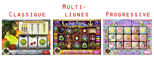 De nombreuses versions de machines à sous existent. On retrouve les différences au niveau de leur cosmétique, des capacités de pari, des gains possibles et du taux de reversement de la maison. Malgré tout, on peut les classer en 3 catégories de base : les machines à sous classiques, les multi-lignes et les progressives.
